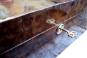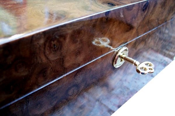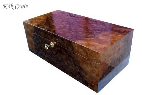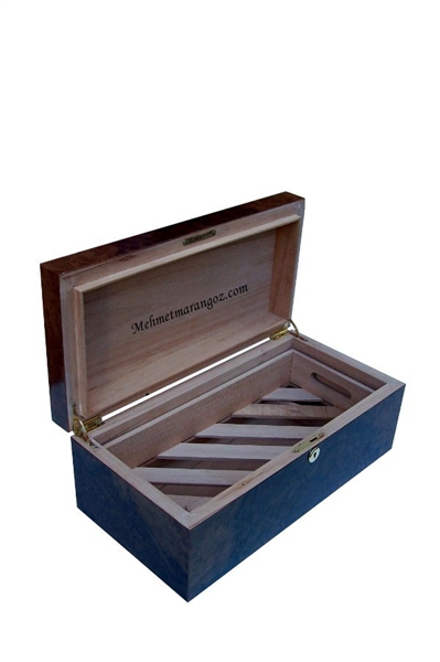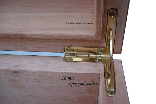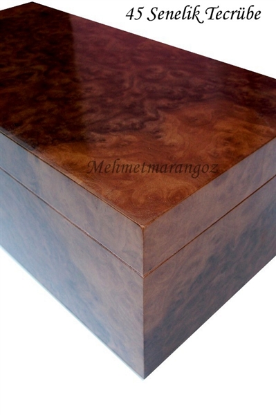 18 mm. İspanyol sedir ağacı üzerine Kök Ceviz Kaplama sıkılarak ürettiğimiz orta boy humidor kutumuz zarafet ve prestiji aynı anda sunmakta. Ürünümüzde Kilit ve 90 derece acılan kelebek menteşe bulunmaktadır. |