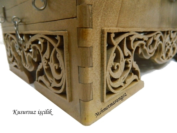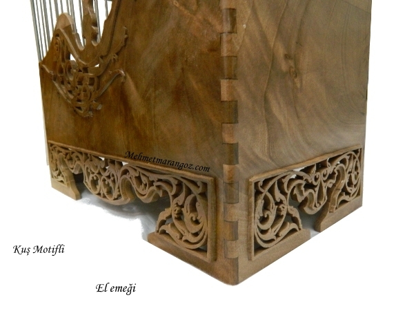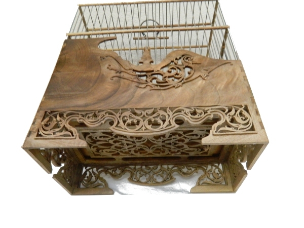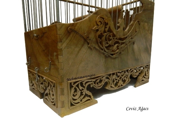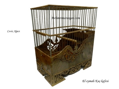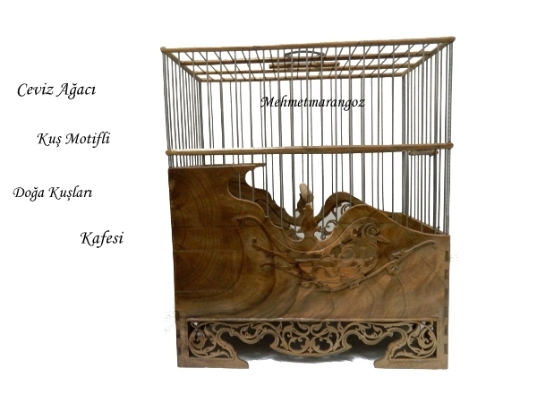 Ceviz Ağacından yapılmış olan bu kafesimiz. El oyma işçiliğinin güzel bir örneğidir. Yapımı 6 gün sürmüş olan bu kafesimizde kuş motifleri işlemiştir.Hiç bir makina yardımı olmadan kıl desteresi ile elde oyularak yapılmıştır.